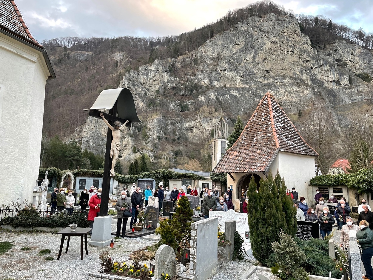 Am Vorabend des Palmsonntages 2021, um 18:00 Uhr, fanden sich auf beim Friedhofkreuz in Peggau, zahlreiche Menschen zur Segnung ihrer Palmzweige ein.