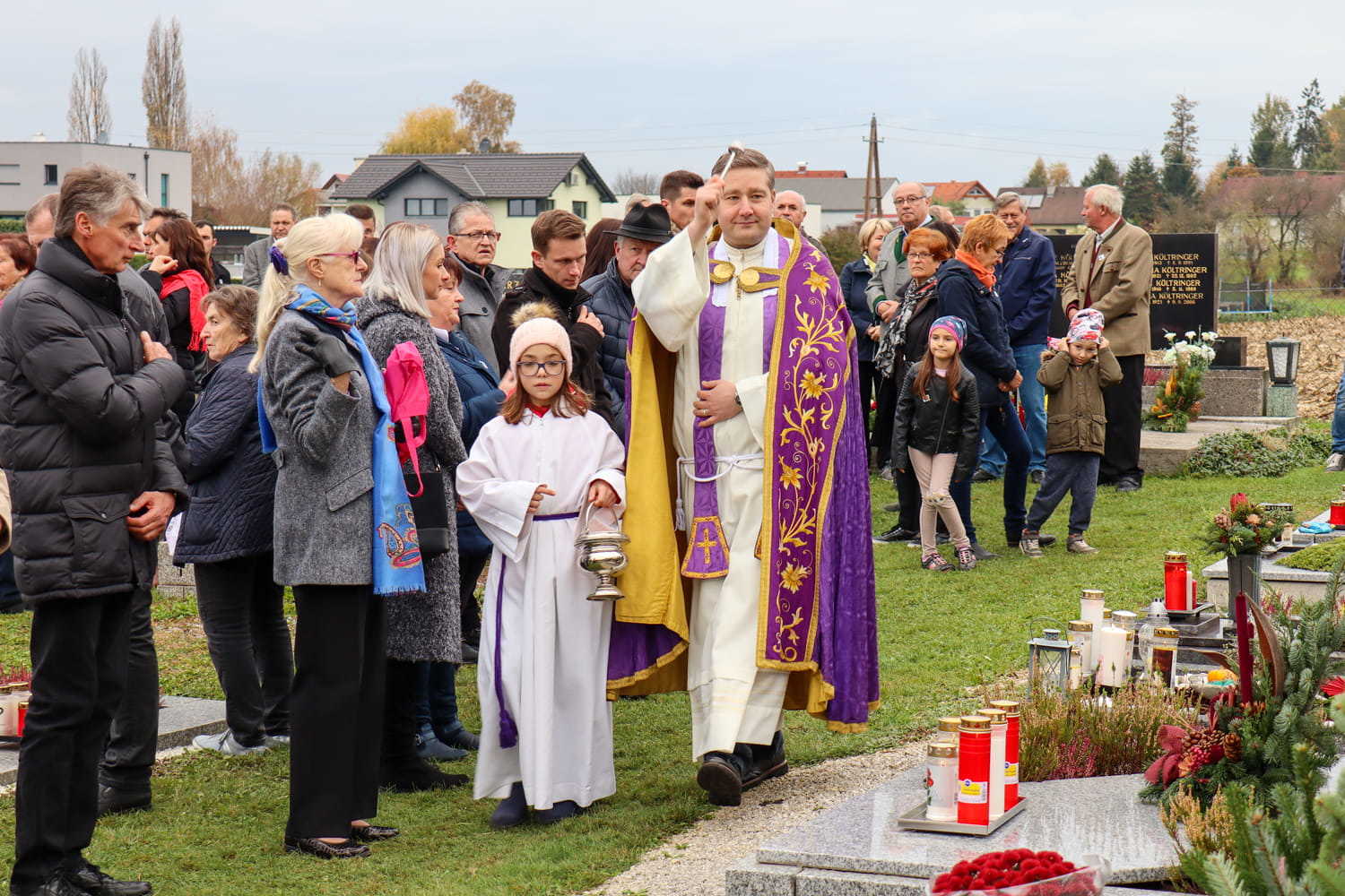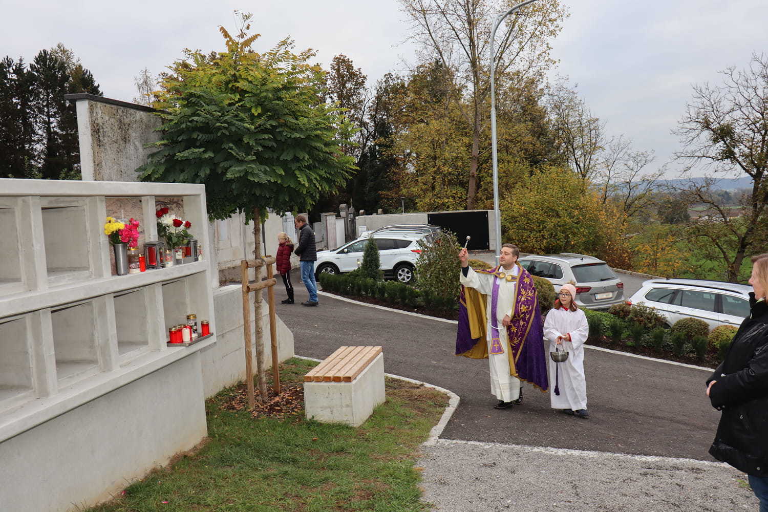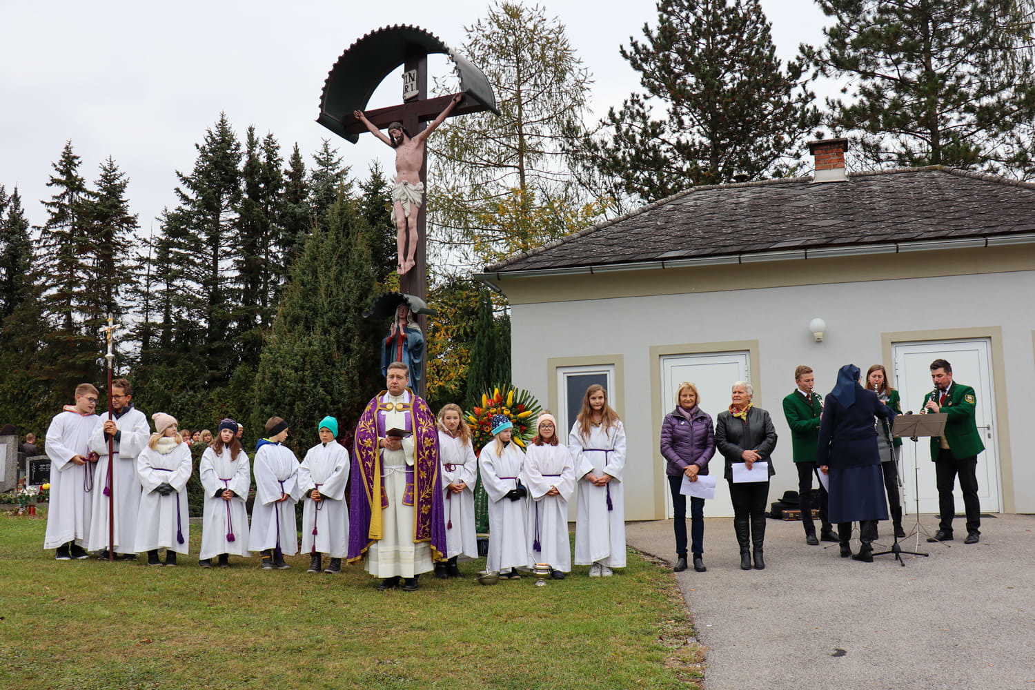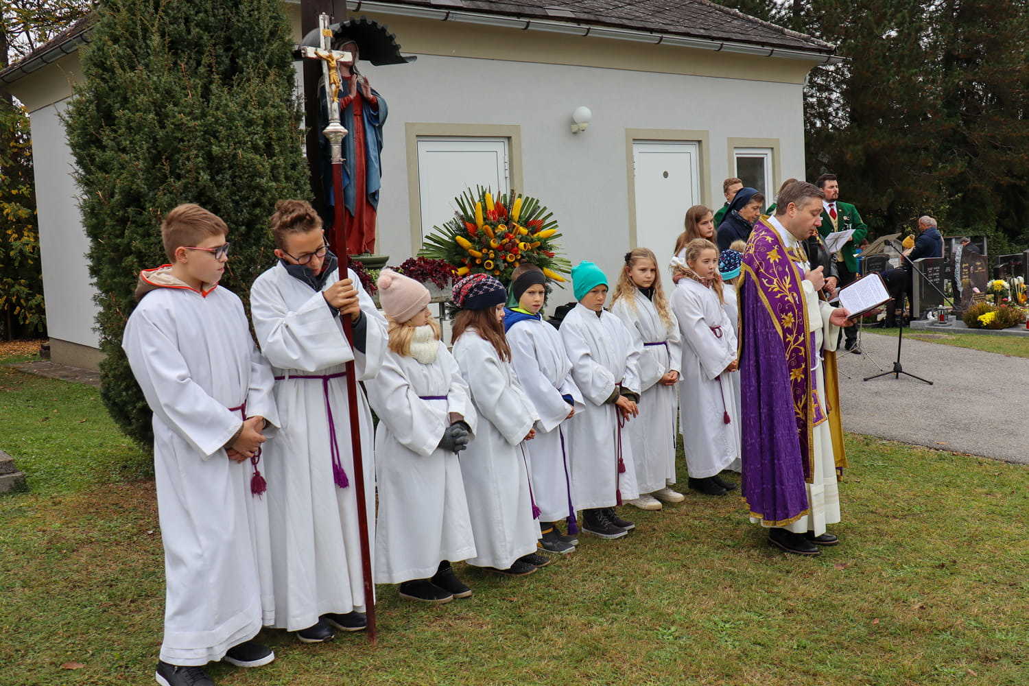 Am Nachmittag des ersten Novembers gedenken wir Jahr für Jahr unserer lieben Verstorbenen am Friedhof. Heuer wurden bei dieser traditionellen Segnung nicht nur die Gräber gesegnet, sondern auch die neu errichtete Urnenwand. Diese wurde somit offiziell ihrer Bestimmung übergeben.
