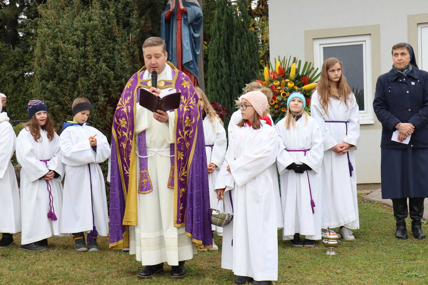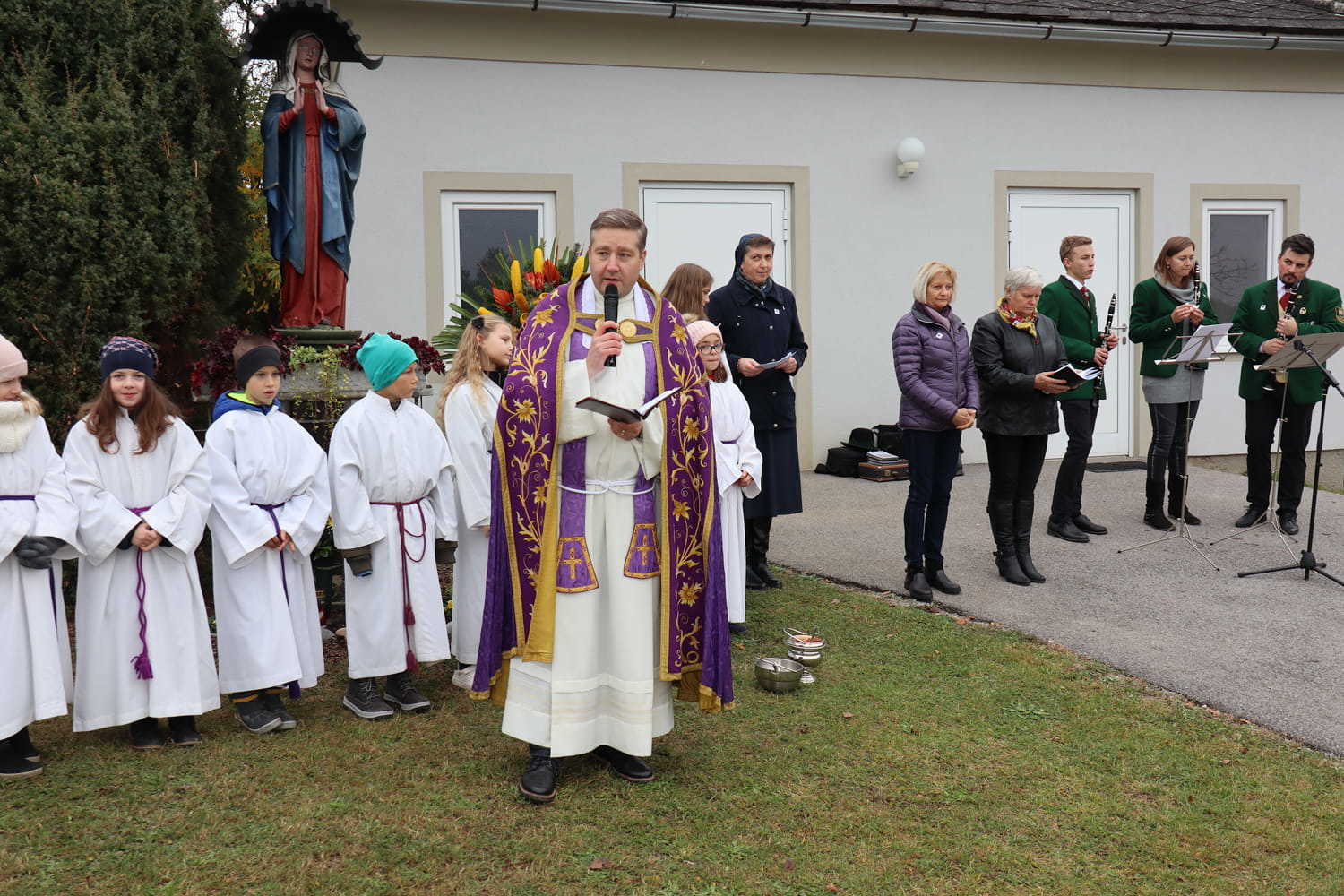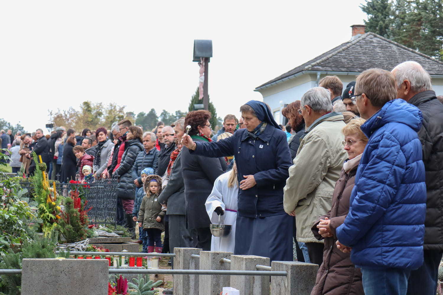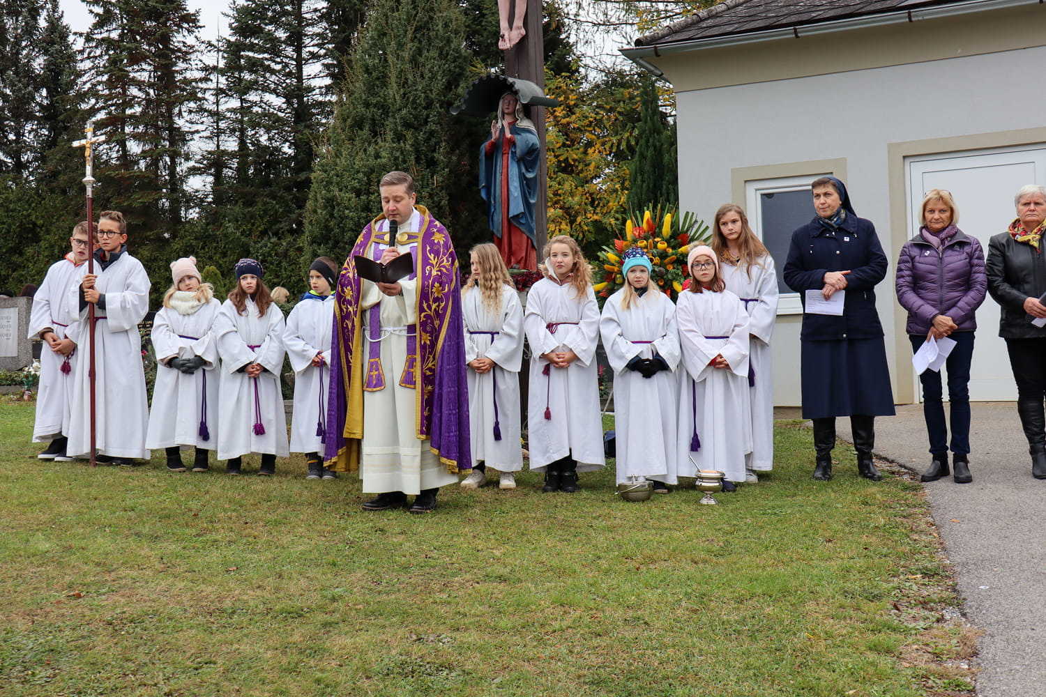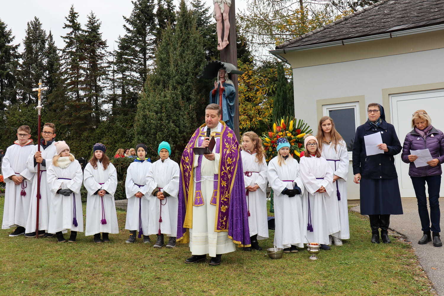 Am Nachmittag des ersten Novembers gedenken wir Jahr für Jahr unserer lieben Verstorbenen am Friedhof. Heuer wurden bei dieser traditionellen Segnung nicht nur die Gräber gesegnet, sondern auch die neu errichtete Urnenwand. Diese wurde somit offiziell ihrer Bestimmung übergeben.
