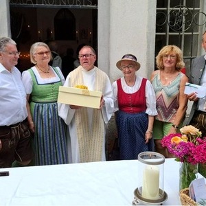 Der Pfarrgemeinderat überraschte Ihn zu seinem 30 jährigen Priesterjubiläum. Die Adriacher Sängerrunde gestaltete die Messe feierlich mit - und als Höhepunkt wurde "Die Ode an die Freude" angestimmt. Der Pfarrgemeinderat überreichte Herrn Pfarrer Ruthofer zu diesem Anlass eine Albe und einen Ledereinband für das Brevier. Pfarrer Ruthofer zeigte sich tief bewegt und sichtlich überrascht.