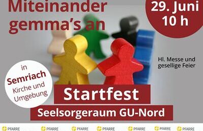 Wir wollen bei diesem Fest beginnen, unser miteinander Kirche sein zu vertiefen und zu verdichten, uns (besser) kennenzulernen, in den nächsten Jahren wird auch unsere Zusammenarbeit stärker werden. Seien Sie dabei – miteinander gemma’s an!