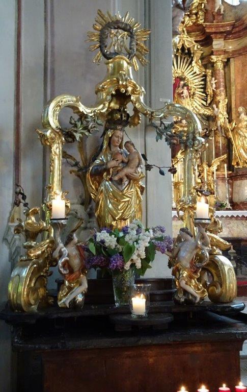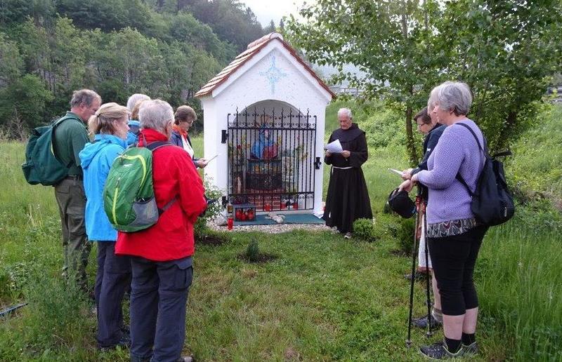Die heurige Fußwallfahrt nach Pernegg stand unter dem Motto "Von Maria - zu Maria". Zum 3. Mal ausgehend vom 2016 errichteten Marien-Bildstock beim Murkraftwerk in Peugen begleiteten 11 Pilger Pater Simon zu Fuß zur Wallfahrt über den Murradweg 2 in Richtung Norden. Nach einer kurzen Andacht beim neuen Bildstock um 6 Uhr früh folgten bei herrlichem Frühlingswetter weitere Gebete und Marienlieder bei der Feldgrill-Zuhube und der Kapelle in Mixnitz. Das Ziel, die Marien-Wallfahrtskirche in Pernegg, auch liebevoll "Frauenkirche" bzw. Wallfahrtskirche Klein-Mariazell genannt, wurde knapp vor 10 Uhr erreicht. Mit Glockengeläute und den vor der Kirche wartenden Gläubigen aus Frohnleiten wurden die tapferen Pilger betend zur Gnadenmutter von Pernegg geleitet. Pater Simon zelebrierte dann dort die Wallfahrermesse. Die Heimreise erfolgte hernach mit Privat-PKWs.