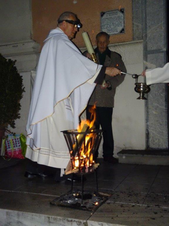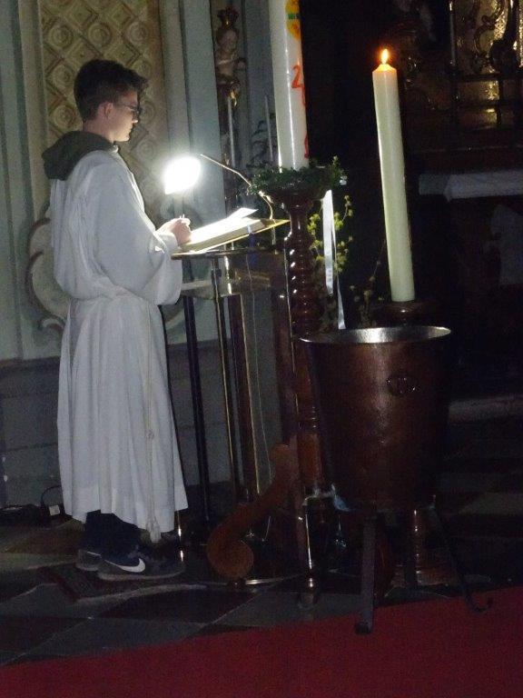 Die Osternachtsfeier war sehr lang, sie schloss alles ein, was für die Gläubigen mit der Auferstehung Jesu verbunden ist: mehrere Lesungen, eine Lichtfeier, einen Wortgottesdienst und die Eucharistiefeier. Die Feier endete schließlich mit dem feierlichen Ostersegen!