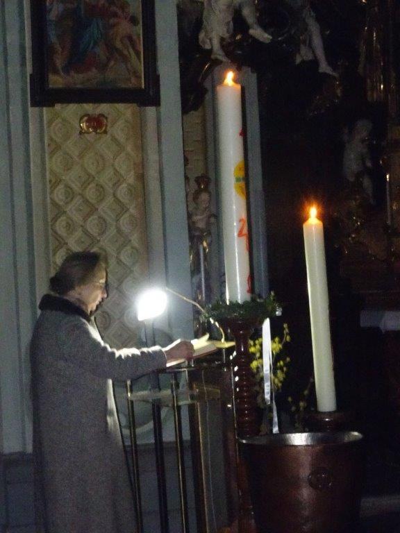 Vom Dunkel zum Licht, vom Tod zur Auferstehung, das war der Inhalt der Osternachtsfeier am Karsamstag um 20 Uhr in der Pfarrkirche. Die Feier der Osternacht, der wichtigsten des Kirchenjahres, begann mit der Entzündung der Osterkerze vor der Kirche. Diese symbolisiert den Übergang vom Dunkel zum Licht. Der traditionelle Ostergruß lautet: "Christus ist auferstanden - er ist wahrhaft auferstanden! Halleluja!"