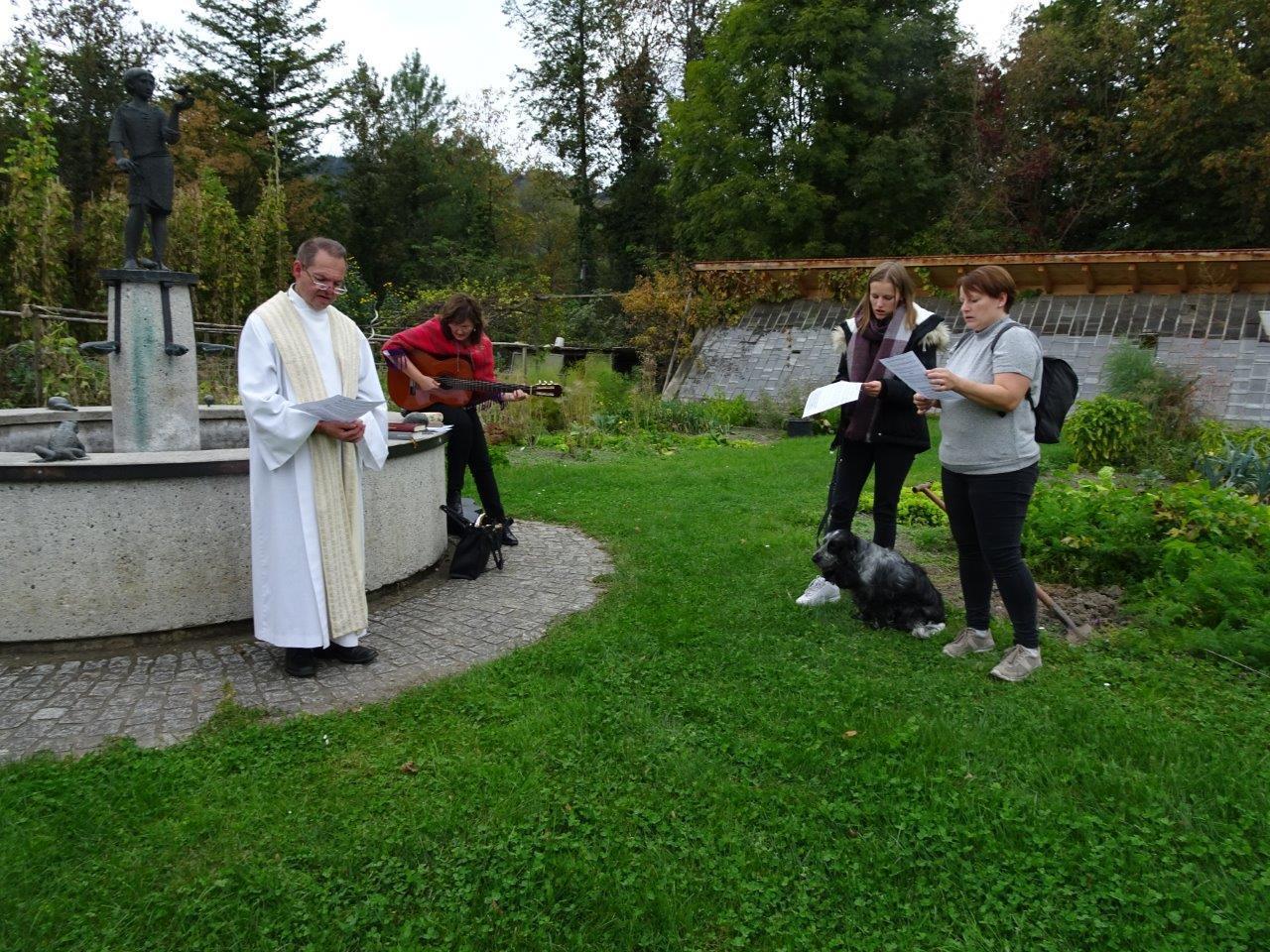 Leider hatten diesen Termin im Klostergarten nur wenig gläubige Tierfreunde wahrgenommen. Viele Menschen sind Gott dankbar, Tiere als Wegbegleiter zu haben.