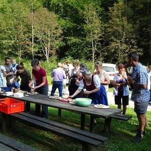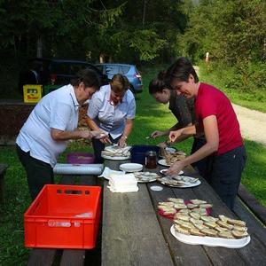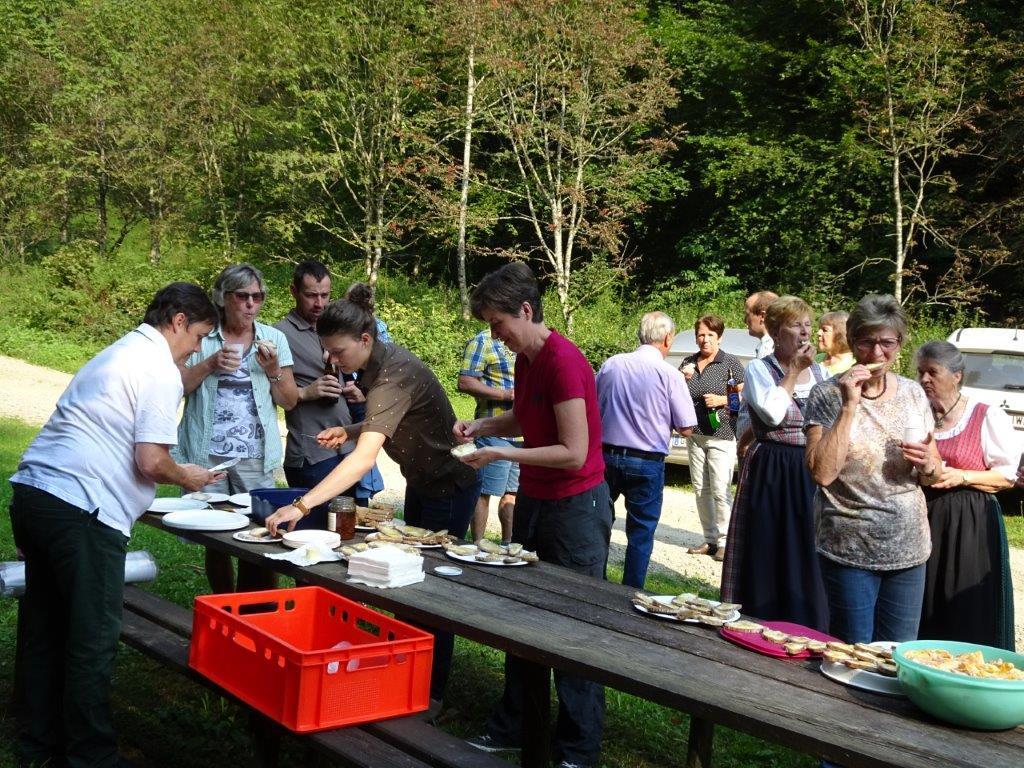 Zum Abschluss kredenzte die Familie Fuchs noch die traditionelle Bartholomä-Jause (Brot, Butter und Honig) auf und die Familie Plienegger spendierte die Getränke dazu.