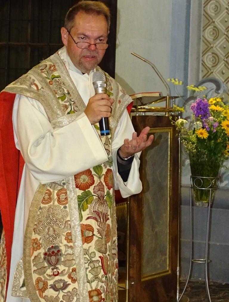 Foto Nr. 5: Pfr. Ruthofer bei der Predigt in der Pfarrkirche.