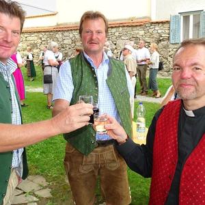 Foto Nr. 1: Am Sonntag, 16. August gratulierten auch die Adriacher. Als Vertreter des Kirchenrats Adriach stieß Ludwig Fassl auf den Jubilar an.