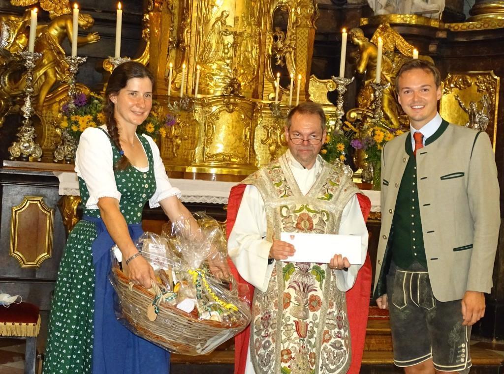 Foto Nr. 6: Für die Pfarre überreichten Greta von der Jungschar, Monika Weingerl-Schalk und Michael Bock vom PGR ein Geschenk.