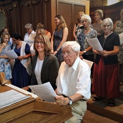 Für Frohnleiten war Franz Grasmugg Jahrzehnte lang der Organist schlechthin. Den sonntäglichen Gottesdiensten, den Taufen, Hochzeiten und auch Abschiedsgottesdiensten verlieh er einen festlichen Charakter. Mit seiner festen und sicheren Bassstimme diente er dem Chor von 1956 bis 1964 und von 1967 bis 2017 und begleitete auf der Orgel viele Chor-Orchester-Messen. Es war eine schöne Fügung, dass sich seine Gesangsbrüder und –schwestern bei ihm gemeinsam verabschieden konnten. Ihm hätte Pfarrer P. Simon am Ende des Festgottesdienstes eine Dankesurkunde von Bischof Wilhelm Krautwaschl in Würdigung seiner Verdienste überreichen wollen. Diesen Akt hat Gott, der Urheber der Stimmen und Klänge, übernommen.