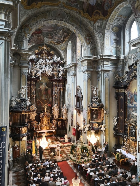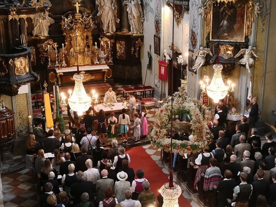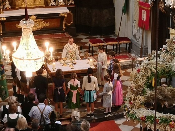 Das Erntedankfest wird in Frohnleiten immer besonders feierlich begangen: Diesmal studierten der Chor und die Streicher des Orchesters der Pfarre unter der Leitung von Miriam Ahrer die "Missa Fac Bonum" des Barock-Komponisten Valentin Rathgeber ein. Der Titel des Werks bezieht sich auf einen Gedanken des 24. Psalms: „Meide das Böse und tue das Gute, suche den Frieden und strebe danach!“.