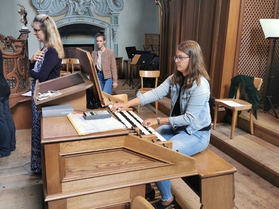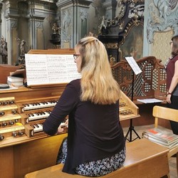 Weiters sangen zur Gabenbereitung unsere Sopranistinnen Eva Heißmann-Zabini und Lena Zabini das berührende Duett „Ich harrete des Herrn“ aus Mendelssohns „Lobgesang“ mit Begleitung des Ensembles und Miriam Ahrer an der Orgel. Zur Kommunion sang unsere Altistin Verena Waidacher das berühmte „Ave Maria“ von Franz Schubert. Mit dieser schönen Kirchenmusik konnten wir das Hochamt trotz der schwierigen Umstände sehr feierlich gestalten!