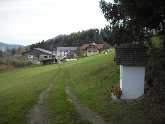 Der äußerst gläubige Besitzer hatte schon lange das Bedürfnis, dem verehrten Wallfahrtsort Mariazell ein Denkmal zu setzen. Zugleich wollte er einen Ort für das Andenken an den im November 2009 im Wald des Anwesens tödlich verunglückten Altbauern Peter Prietl vlg. Wirt schaffen. Der neue Bildstock in der Nähe des Hofes steht idyllisch am Waldrand unter großen Fichten und ist sehr schön mit Pelargonien geschmückt. Unmittelbar daneben laden eine hölzerne Ruhebank und ein kleiner Fischteich zum Verweilen ein. Man hat von diesem Punkt eine herrliche Aussicht über das Murtal und sieht viele Kapellen, Bildstöcke und Kreuze in der näheren Umgebung – von der Badl-Kapelle über den Leonhard-Bildstock am Dirnberg bis zum Gipfelkreuz am Gschwendt.