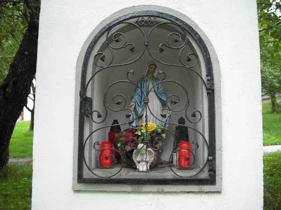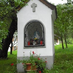 An der Hauseinfahrt zum Anwesen der Familie Maria und Vinzenz Waidacher vlg. Kaiser im Tal (im Volksmund „Koasa“) in Schrems 47 steht unter Obstbäumen und nahe der bekannten Obstpresse ein schöner Bildstock, der 1982 von P. Simon feierlich eingeweiht wurde.