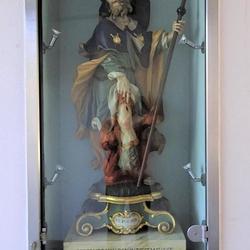 Schließlich wurde die Statue in einer Mauernische des alten Rüsthauses untergebracht, mit einer Beleuchtung und einem schmucken Blumenkisterl versehen.