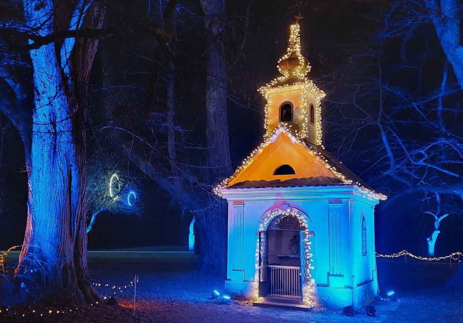 In den vergangenen drei Jahren wurde die Kapelle im Zuge von Lumagica auch in den magischen Lichterpark am Murhof mit zauberhaften Glanz miteingebunden.