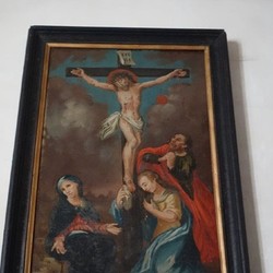 Über dem Schrank befinden sich ein freigelegtes spätgotisches Apostelkreuz und ein Bild von der Verehrung Jesu mit nackter Schulter. An der rechten Wand hängt ein bemerkenswertes Ölgemälde, ebenfalls aus der Spätgotik, mit einer Inschrift über die Begehung der Arche Noah. In der Nische unter dem zur Turmkammer angrenzenden Fenster ist eine Statue des heiligen Antonius und rechts daneben ein Kreuzigungsbild vorhanden.