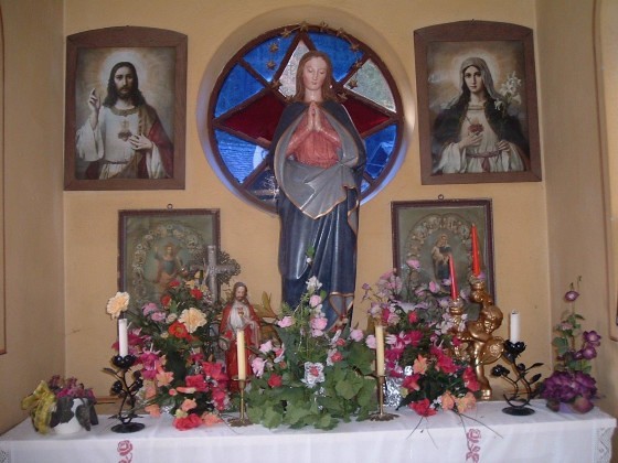 Herzstück dieser Kapelle ist eine wunderschöne Muttergottesstatue aus Gips, flankiert von einigen Jesus- und Marienbildern.