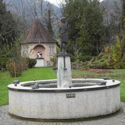 Der Franziskusbrunnen ist ein Kunstwerk unserer Zeit und dem Andenken des heiligen Franz von Assisi gewidmet. Der in der Zwischenzeit berühmt gewordene Akademische Maler Edwin Eder hat sich mit großem Engagement mehr als ein Jahr mit diesem Werk beschäftigt. So entstand eine Bronzeplastik eines jugendlich-revolutionär anmutenden Franziskus im Gespräch mit einem Vogel. Die Vogelpredigt ist eine bekannte Erzählung aus dem Leben des Heiligen, der bekanntlich ein großer Natur- und Tierfreund war. Unter den fünf am Brunnenrand postierten Tieren befindet sich auch ein durch Ölschlamm verendeter Schwimmvogel. Fünf kleine Weltkugeln, die das Tier-Pentagon am Brunnenrand unterteilen, zeigen auf jedem der fünf Kontinente einen Krater. Wunden, aus denen die Welt blutet. So entstand eine der wichtigsten plastischen Arbeiten des heimischen Künstlers.