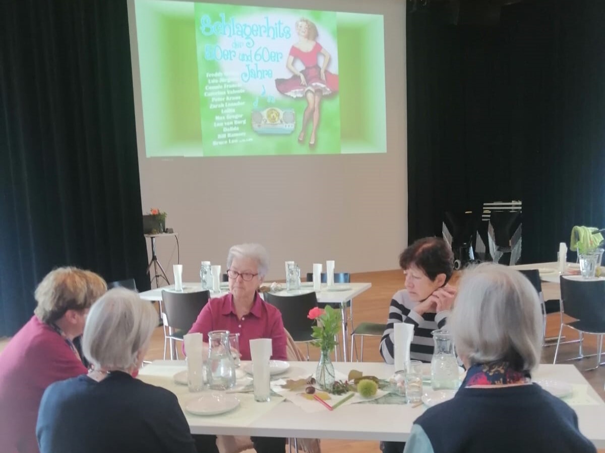 Der ein oder andere Schla­ger weckte wie­der leb­haf­te Er­in­ner­un­gen und bei einem Quiz war die Text­sicher­heit der Be­such­er:in­nen ge­fragt. Es wurde ge­sun­gen und ei­frig ge­ra­ten und so ver­ging die Zeit wieder wie im Flug.