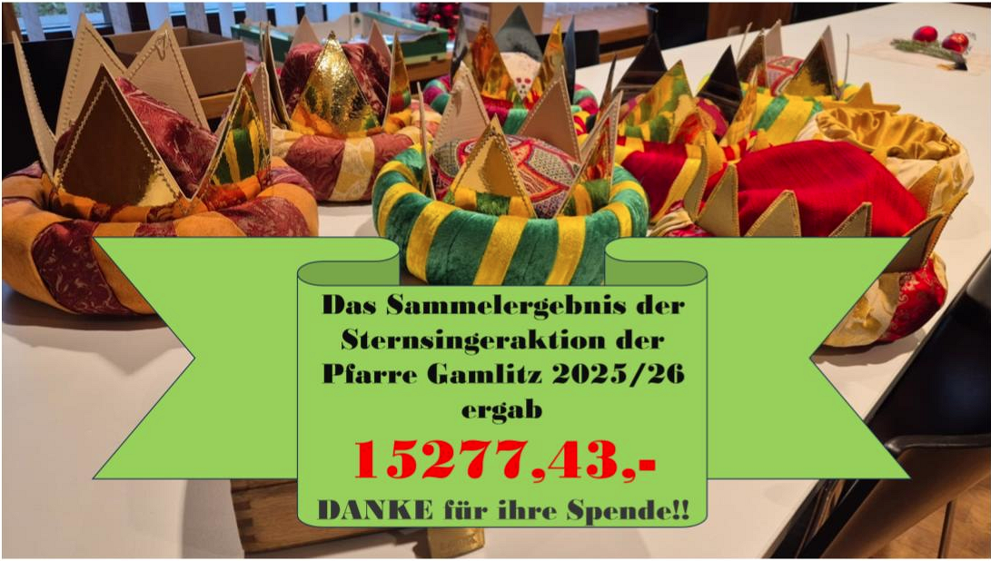 Bei der heurigen Sternsingeraktion wurden € 15 277,43 gesammelt!