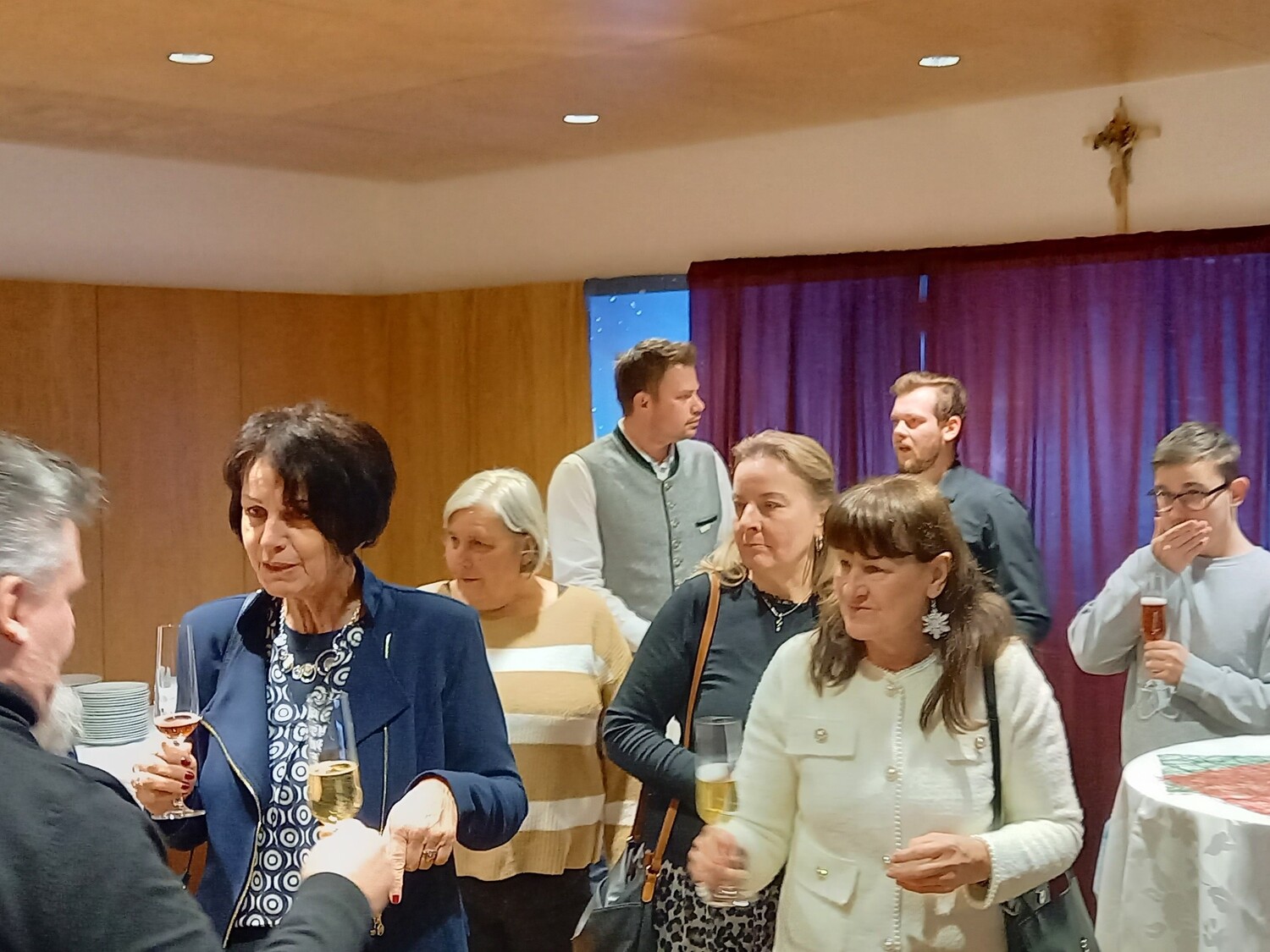 Gleich zur Begrüßung wurde mit einem Gläschen Sekt auf die gute Zusammenarbeit angestoßen und bei einer stimmungsvollen steirischen Hintergrundmusik ließ es sich gleich angeregt plaudern. Pfarrer Schneeflock betonte in seiner Ansprache, wie wichtig "JEDER, JEMAND UND IRGENDJEMAND" ist und bemühte sich, alle Anwesenden namentlich hervor zu heben.