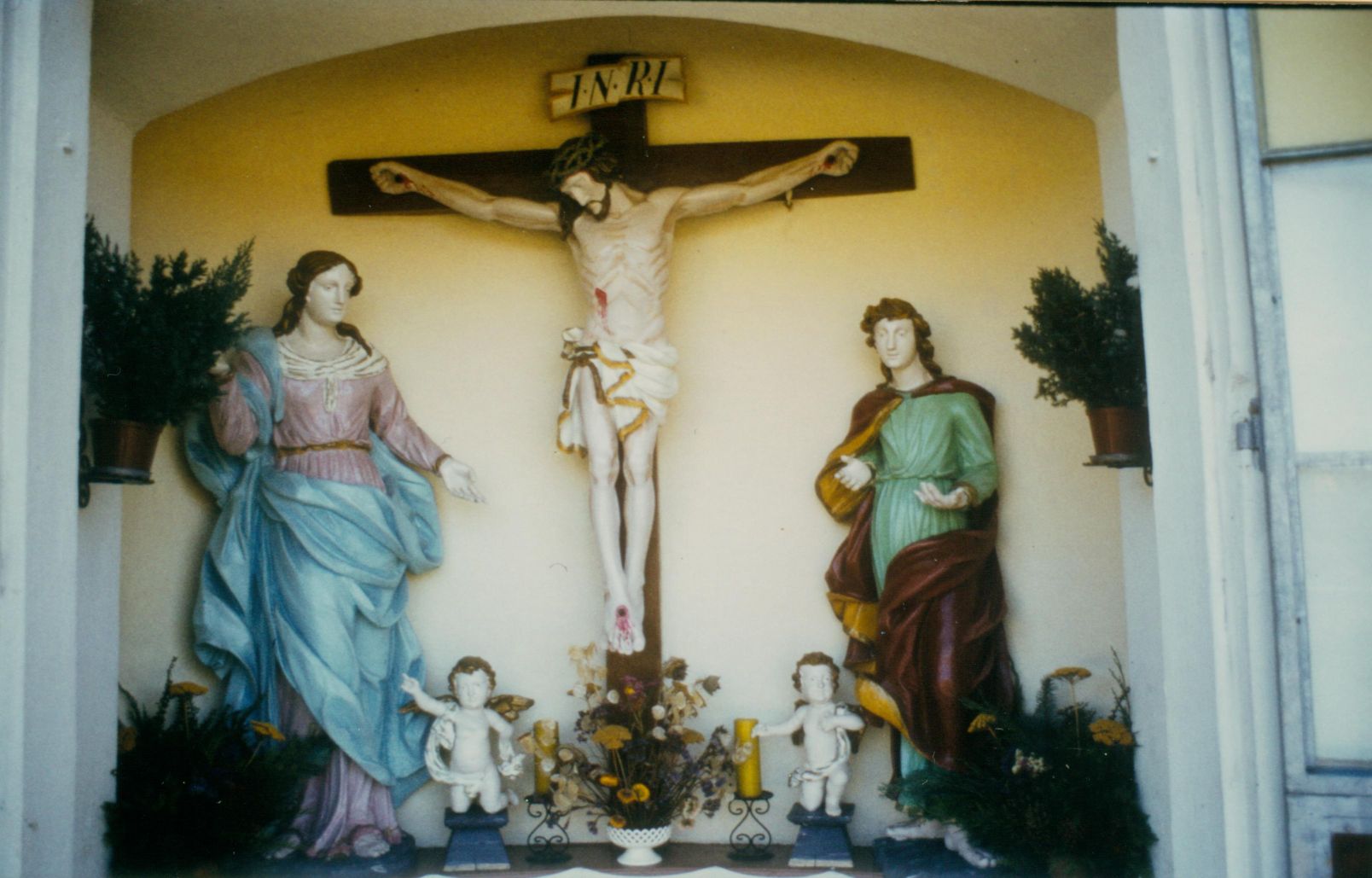 Traditionell ist am Karsamstag an dieser Kapelle die erste “Fleischweihe”, wobei die Doppeltüre ganz aufgemacht wird.