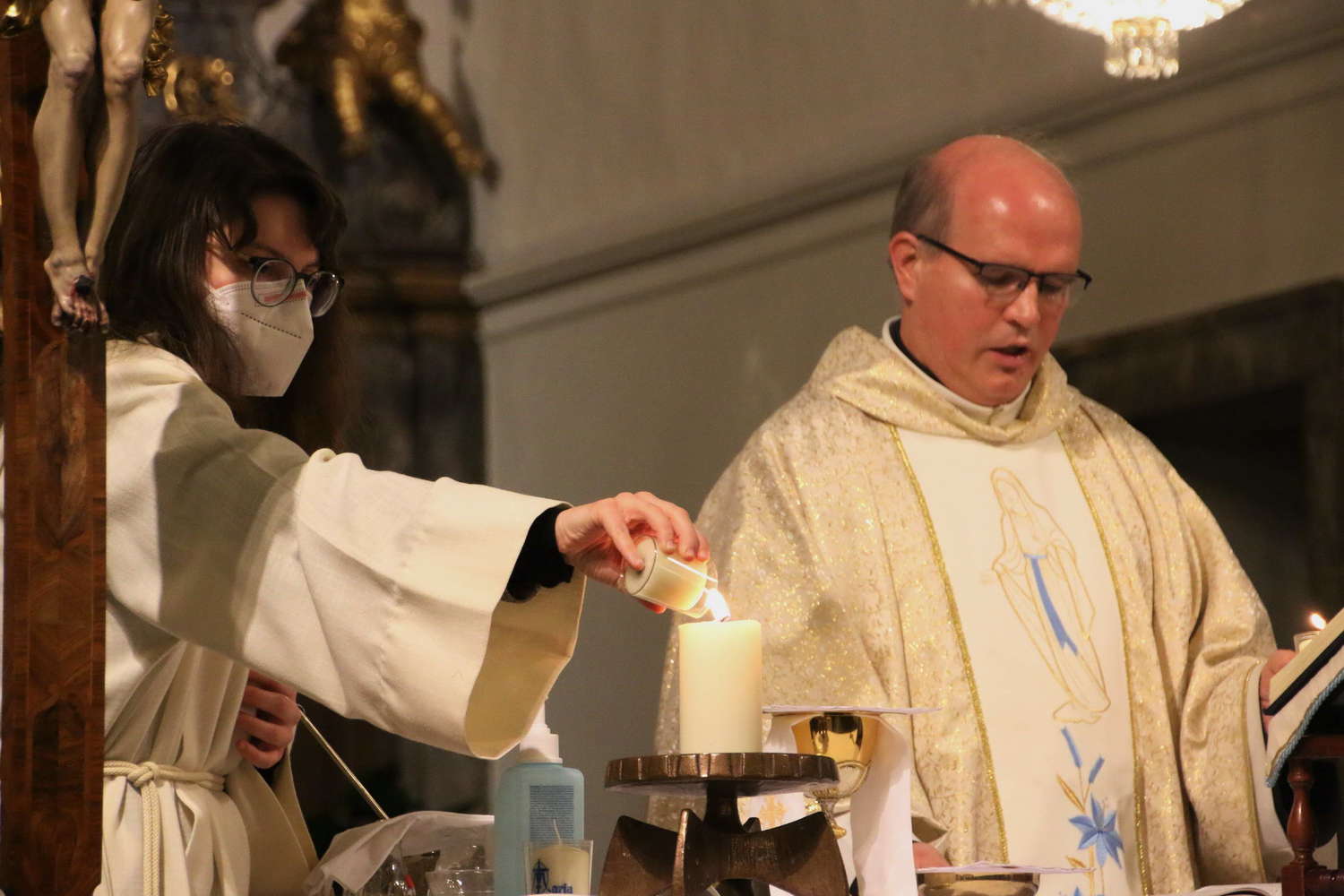 Am Dienstag, den 02. Februar 2021, feierten wir um 18:30 Uhr stellvertretend für die ganze Pfarrgemeinde die Heilige Messe am Fest der Darstellung des Herrn, Maria Lichtmess. Hauptzelebrant war Pfarrer P. Petru Farcaș OFMConv, Konzelebrant P. Clemens Breineder OFMConv. Zu Beginn der Heiligen Messe wurden die Kerzen gesegnet, die Sie noch bis Sonntag mit nach Hause nehmen können. Mehr Fotos zur Heiligen Messe finden Sie hier.