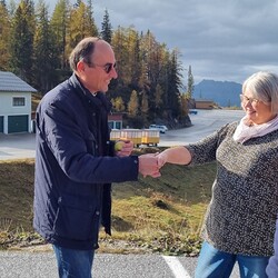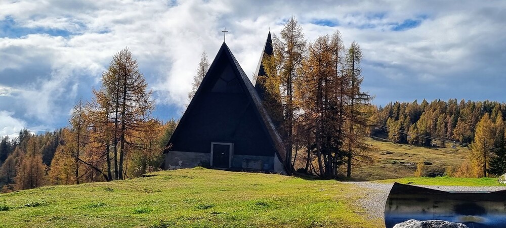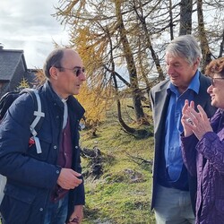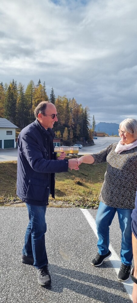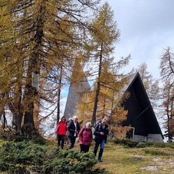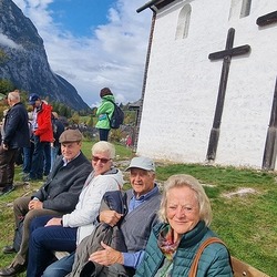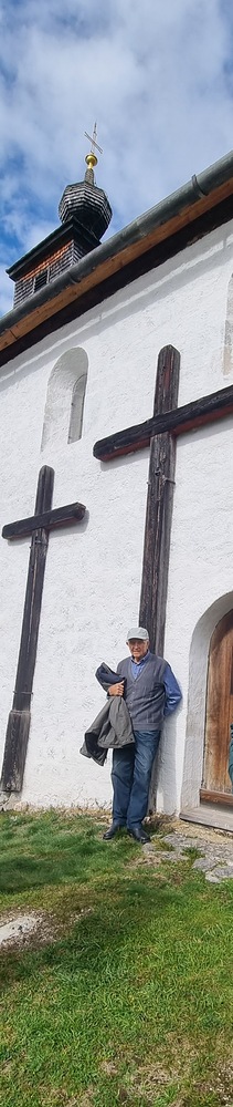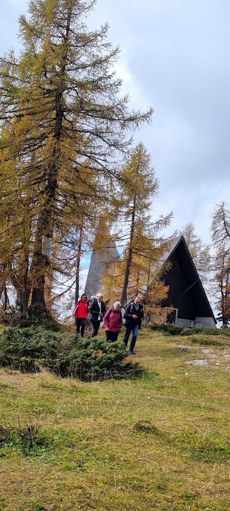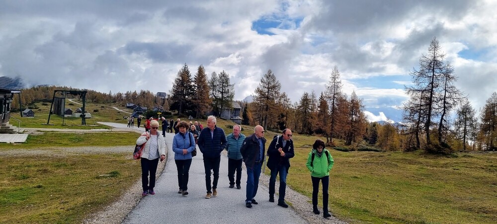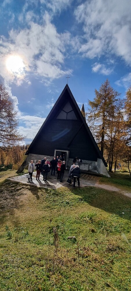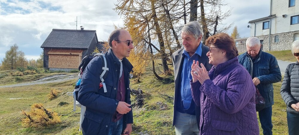 Bei unserer nächsten Station in Bad Mitterndorf hat unser ehemaliger Pfarrer Hans Karner auf uns gewartet. Das Hallo und die Wiedersehensfreude waren groß! Gemeinsam fuhren wir auf der 10 km langen Panoramastraße auf das Hochplateau der Tauplitzalm. Der Nebel hat sich immer mehr gelichtet und am Ziel auf 1600 m Seehöhe empfingen uns Sonnenschein und blauer Himmel. „Wenn Engel reisen!“