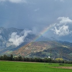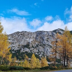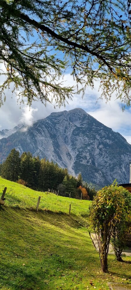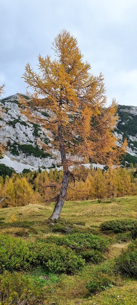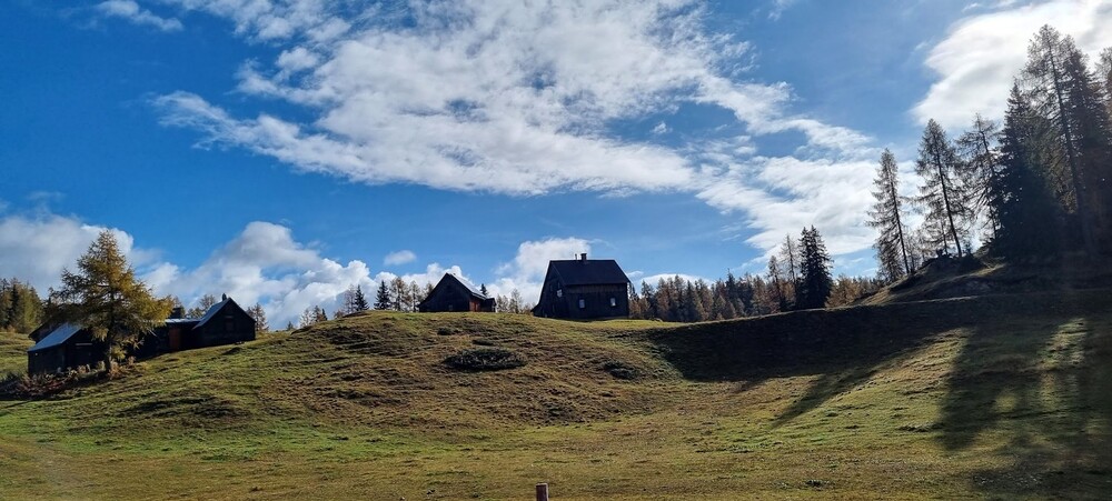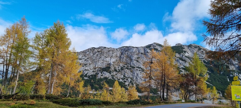 Nach einem kleinen Spaziergang ging es wieder bergab, begleitet von beeindruckenden Blicken auf die umliegende Bergwelt und die herbstliche Natur. Der Grimming gab sich mal bedeckt, mal nur mit Hut … der Dachstein ließ sich leider nicht blicken.