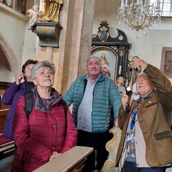 In der wunderschönen Bergkirche „Heiligste Dreifaltigkeit“ feierten wir eine kleine Andacht. Das Evangelium „Lk 11, 37-41“ und die Predigt von Hans waren speziell für uns ausgesucht – (äußere und innere) Reinigung.