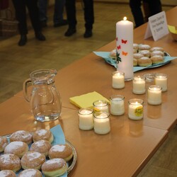 DU BIST LICHT war das Motto und der Auftrag, den uns Vikar Gerhard Hatzmann beim Lichtmessgottesdienst in Lieboch mitgab. Trotz oder gerade wegen der aktuellen Herausforderungen lichtvoll sein, das können Menschen die glauben, weil sie ihr Licht von Gott bekommen. Symbolisch trugen wir Christen das Licht in einer Prozession nach außen. Die steirische Akkordzithergruppe begleitete musikalisch den Gottesdienst. Anschließend wurden 120 Lichtmesskrapfen im Nu "verputzt" beim gemütlichen Zusammensein im Pfarrsaal.