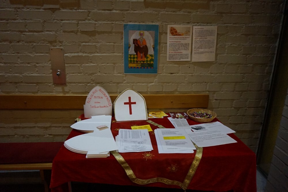 Ein Nikolaustisch mit Mitren zum selber basteln und Vorlagen für eine Nikolausfeier zuhause von Tina Schörgi wurde gerne angenommen, denn jede und jeder kann sein wie Nikolaus.