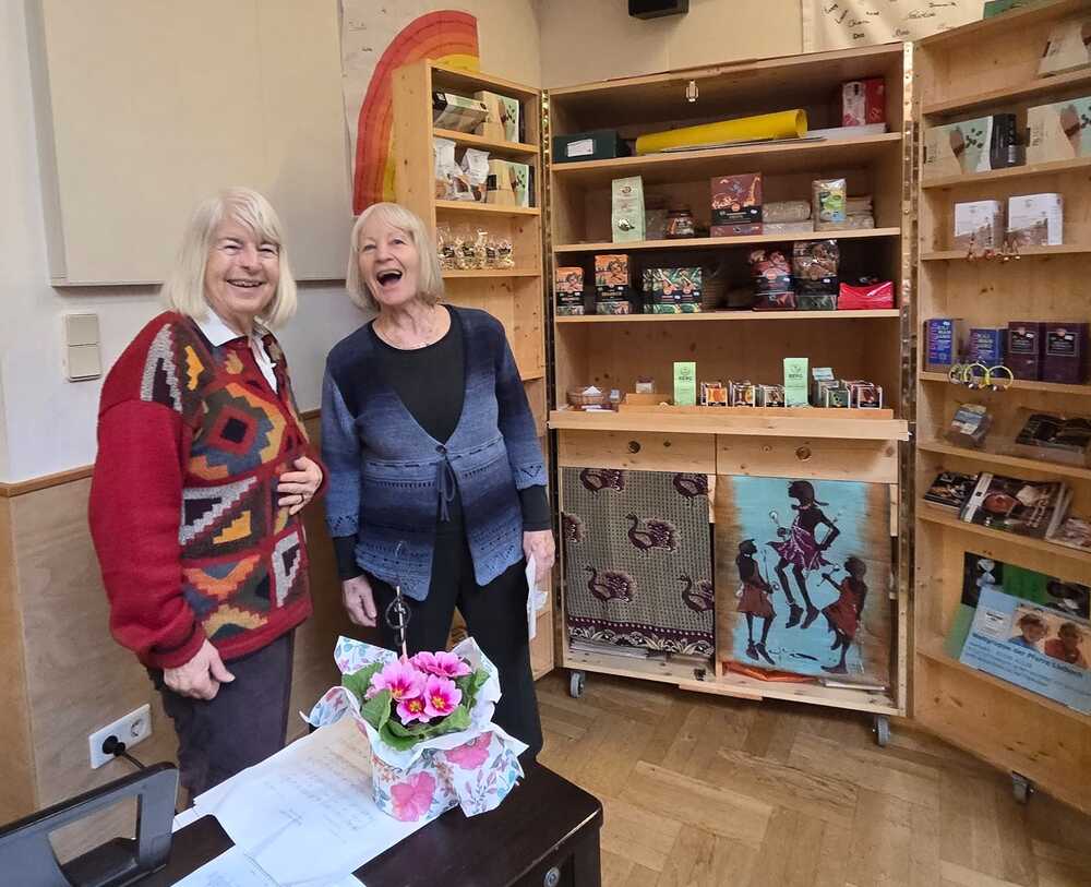 Viele folgten der Einladung und unterhielten sich gut bei Kaffee,  Kuchen und "Uhudlerprosecco" und gemeinsamen Liedern.