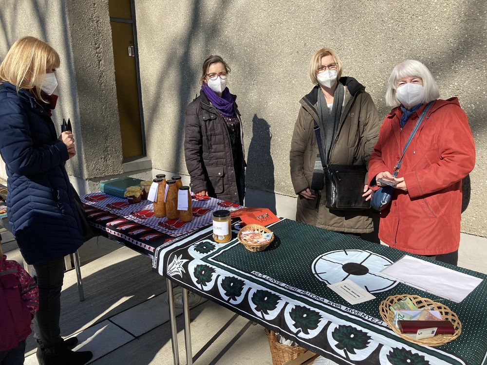 Danach fand im Rahmen des Familienfasttages der Suppensonntag heuer im Freien mit einem Verkaufsstand von  "Suppe zum Mitnehmen" statt. Innerhalb kürzester Zeit waren die köstlichen Suppen ausverkauft. Über Euro 700 kamen an Spenden herein, die für die Partnerinnen in Kenia zur Unterstützung junger Mädchen verwendet werden. Die engagierten Frauen der Weltgruppe gestalteten auch den Gottesdienst mit. Ein herzliches Danke allen Beteiligten!