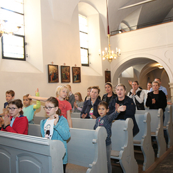Wir starteten um 16:00 Uhr mit einer schwungvollen Heiligen Messe in den Nachmittag. Gleich danach gab’s das MiniMovie in der Kirche zu sehen; ein Film, der Lust aufs Ministrieren machen soll und bei dem auch einige der anwesenden Kinder mitgespielt haben.
