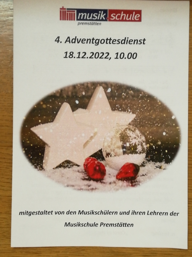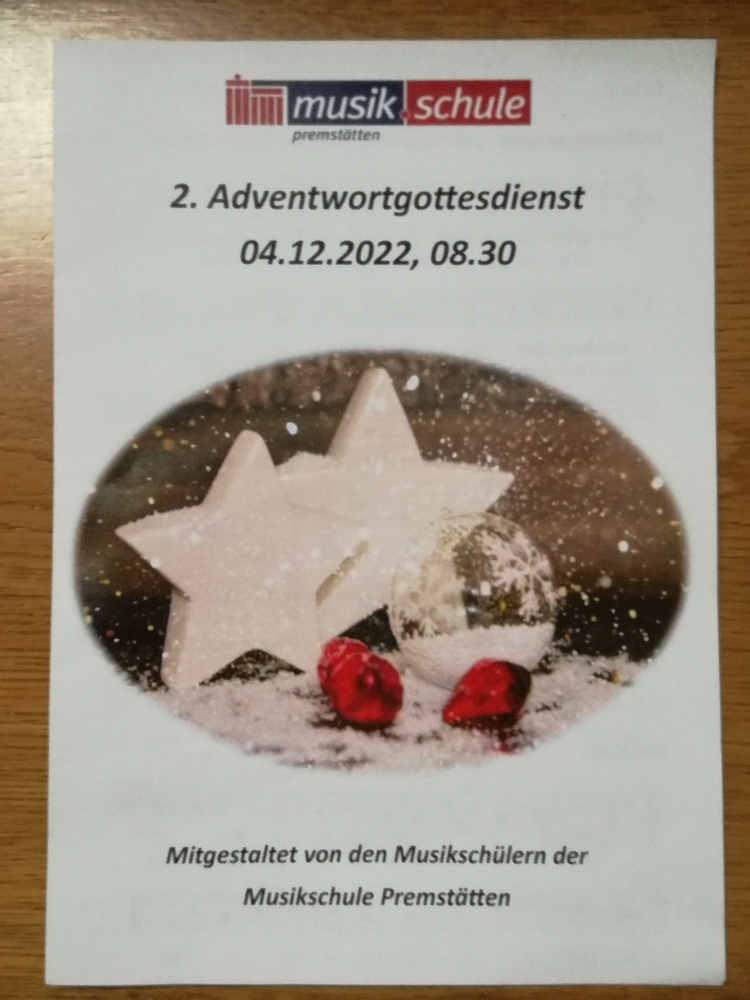 Besondere Freude, aber auch adventliche Besinnung, schenkte uns auch der Gaudete-Gottesdienst mit Vikar Norbert Glaser und der Musikschule Premstätten. In der Predigt erfuhren wir, was die verheißungsvollen Worte des Propheten Jesaja über die Wüste, die zum Garten wird, (Jes 35,1-6a.10), für uns heute bedeuten könnten.