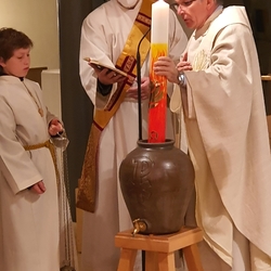 Am frühen Morgen des Ostersonntags feierten wir mit Vikar Norbert Glaser und Diakon Michi Zepf die Auferstehung unseres Herrn, Jesus Christus.