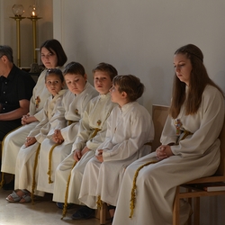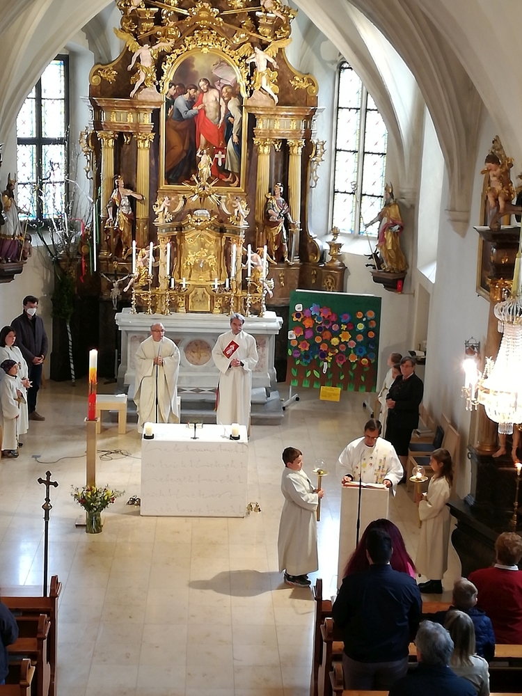 Am Sonntag den 26. Juni haben wir mit den Täuflingen der Corona Zeit einen Familiengottesdienst gefeiert. Die anwesenden Kinder wurden mit frisch gesegnetem Wasser während der Kommunionausteilung zur Erinnerung an ihre Taufe gesegnet. Die beiden Taufbewerber Mehri und Ali aus dem Iran wurden bei diesem Gottesdienst vorgestellt und mit dem Katechumenenöl gesalbt.