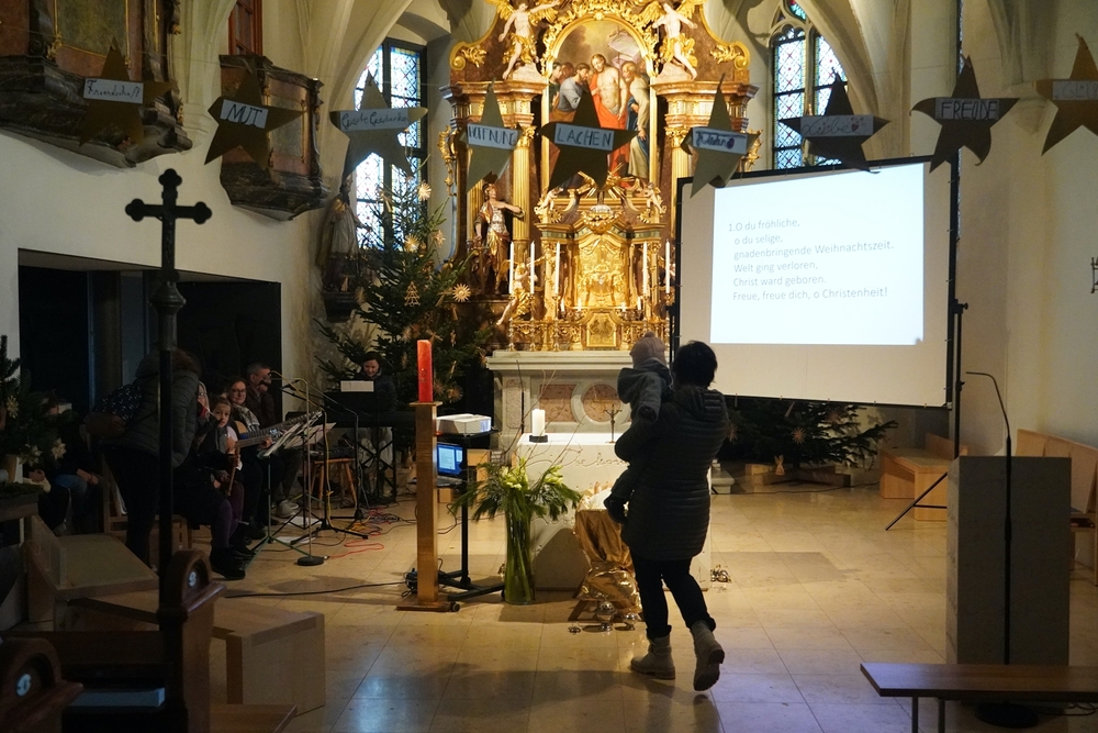 Am Christtag feierte Vikar Norbert Glaser mit der Pfarrgemeinde das Hochfest der Geburt Christi. Das Weihnachtsevangelium und seine Bedeutung für uns heute standen im Mittelpunkt des Festgottesdienstes, der vom Kirchenchor musikalisch gestaltet wurde. Unter der Leitung von Organistin Magdalena Moser wurde neben traditionellen Weihnachtsliedern eine Messe von Karl-Bernhardin Kropf gesungen, die in einstimmiger Fassung - Gotteslob 715 – von den Gläubigen mitzusingen war. So erlebten wir in unserer weihnachtlich strahlenden Kirche einen wahrlich festlichen Weihnachtsgottesdienst!