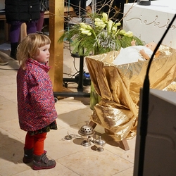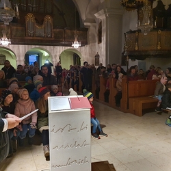 In dem Sinne, dass jede und jeder von uns Friedens- und LichtbringerIn sein kann, waren die Gläubigen eingeladen, Teelichter vor der Christus-Ikone zu entzünden.