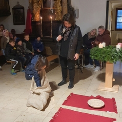 Mit vielen Kindern, Eltern und Großeltern feierte Wort-Gottes-Feier-Leiterin Anja Asel am Nachmittag des Heiligen Abends in unserer weihnachtlich geschmückten Kirche die Geburt des Jesuskindes. Die Feier wurde von unserer „Kirchenband“ mit wunderbaren Weihnachtsliedern musikalisch gestaltet. Begeistert sangen Groß und Klein mit und man spürte die Freude aller, am „Geburtstagsfest des Jesuskindes“ teilzunehmen.