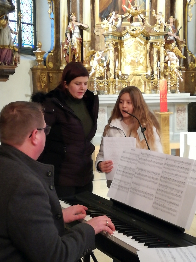Mit Geigen, Querflöten und Gesang gestalteten Schülerinnen der Musikschule Premstätten mit ihren Lehrerinnen die heilige Messe zum 4. Adventsonntag. Am Keyboard und an der Orgel fungierte Musikschuldirektor Klaus Eder.