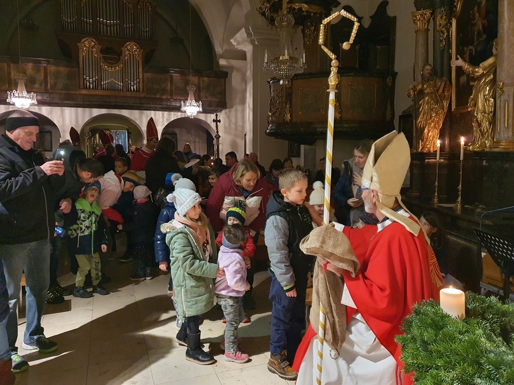 Am Namenstag des heiligen Nikolaus schließlich erhielten noch die „Zwergerlgruppe“ sowie die Kindergärten und die Volksschule Besuch vom Nikolaus.