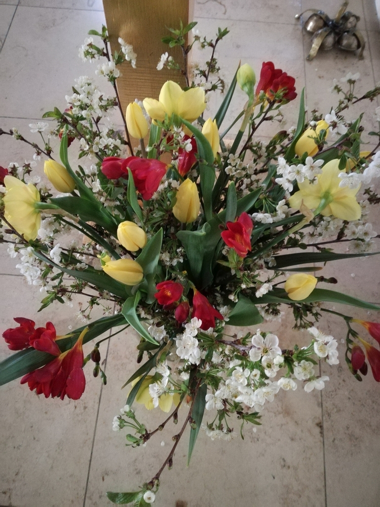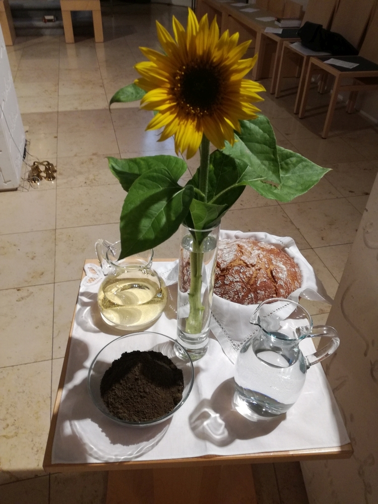 In einem schönen Blumenritual konnte jede und jeder selber in Gedanken aussprechen, was Jesus für sie oder ihn bedeutet. Vielleicht ist er Freund und Begleiter, vielleicht Sonne und Halt im Leben und noch vieles mehr.