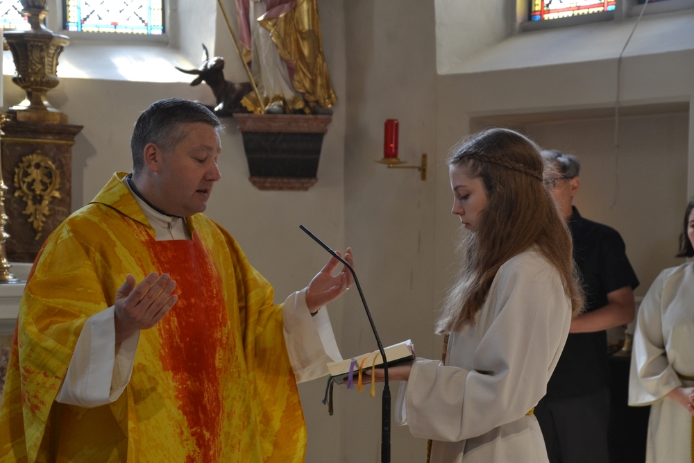Pfarrer Claudiu Budau, der mit der Pfarrgemeinde feierte, freute sich über die Mitwirkung der Musikschule sowie über die Mitgestaltung des Gottesdienstes durch einige Firmlinge, die Kyrie-Gedanken und Fürbitten vortrugen.