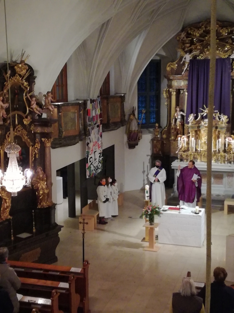 Am 3. Fastensonntag feierte Claudiu Budau dann überraschend auch die Sonntagsmesse bei uns. Im Mittelpunkt stand Gottes Zusage an uns - „Ich bin da“ und stehe zu euch, auch in so schwerer Zeit!