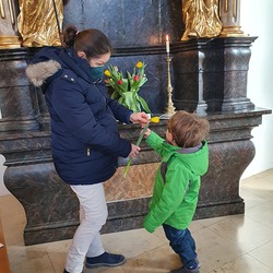 Mit einer Blume zum bevorstehenden Valentinstag wurden die Gottesdienstbesucher/innen bei der Sonntagsmesse am 13.02. überrascht.