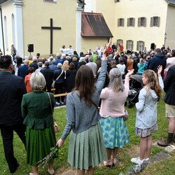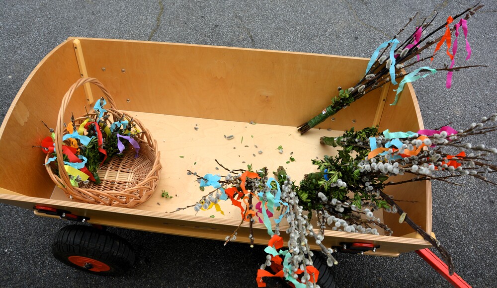"Kommt herein, kommt herein. Der Himmel soll heut offen sein, für alle Menschen Groß und Klein, kommt alle herein!“ So singen die Kinder des TOKI (Pfarrkindergarten Tobelbad) zu Beginn des Gottesdienstes am Palmsonntag. Viele haben das gehört und sind gekommen. Voran die Jungscharkinder mit ihrem Palmbuschenkreuz, das sie in der Jungscharstunde gebunden haben. Aus Voitsberg war eine große Wandergruppe da und natürlich viele aus dem Seelsorgeraum. Vikar Gerhard Hatzmann erreicht alle, schon beim Kreuzzeichen hat er die Aufmerksamkeit der Kleinen und Großen, wenn er spricht: "Ich denke an dich, ich erzähle von dir, ich spüre du bist bei mir." Beim Evangelium berichtet er von Jesus, wie er mit dem Esel in Jerusalem einzieht, wie ein König – aber wie ein König der Liebe für uns Menschen. Peter Preitler mit seiner Gruppe hat die Messe musikalisch gestaltet und das TOKI Team unterstützt. Im Anschluss gab es eine Agape und den Ostermarkt des Generationentreffs, von Alexandra Deutsch liebevoll vorbereitet. DANKE an alle für dieses segensreiche Fest. Margret Hofmann, Pastorales Pfarrteam Liturgie und Öffentlichkeitsarbeit