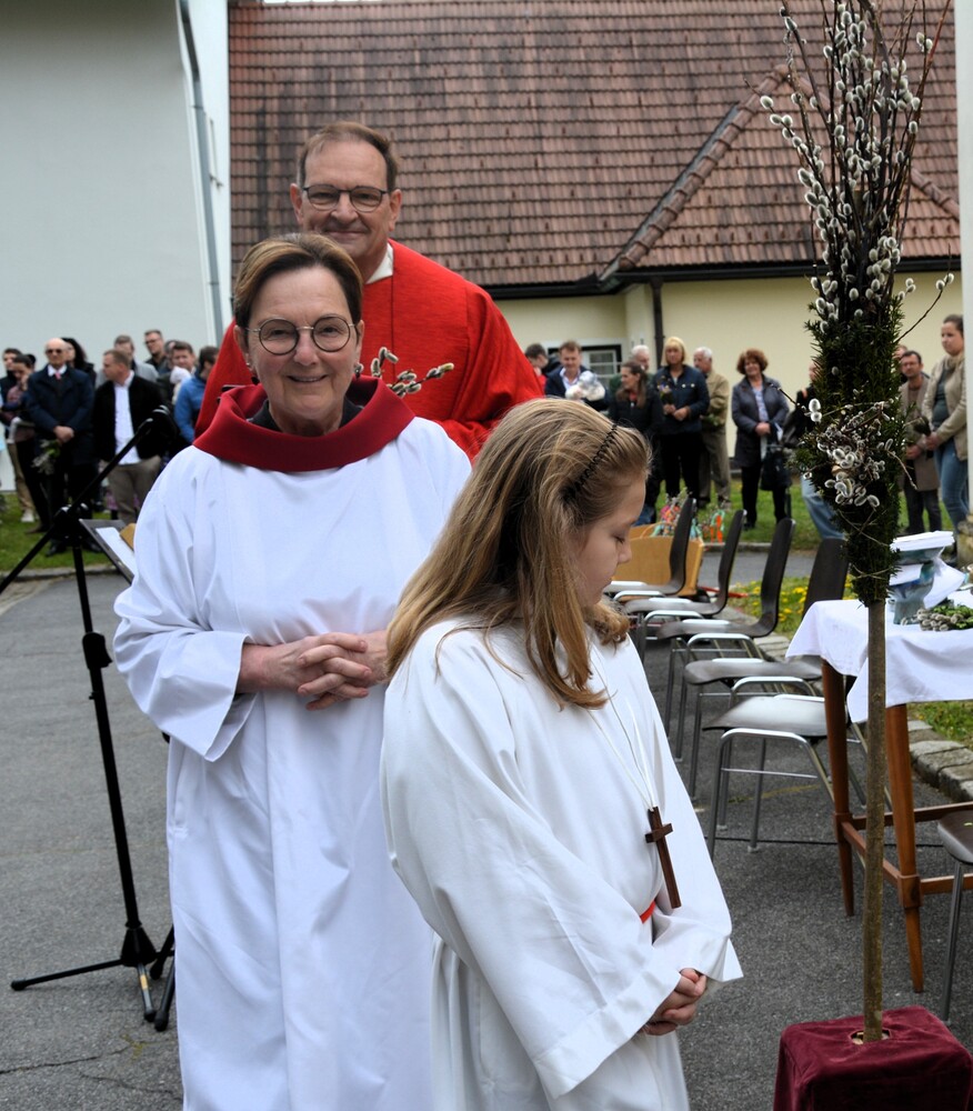 Palmweihe mit Vikar Gerhard Hatzmann am Kirchplatz